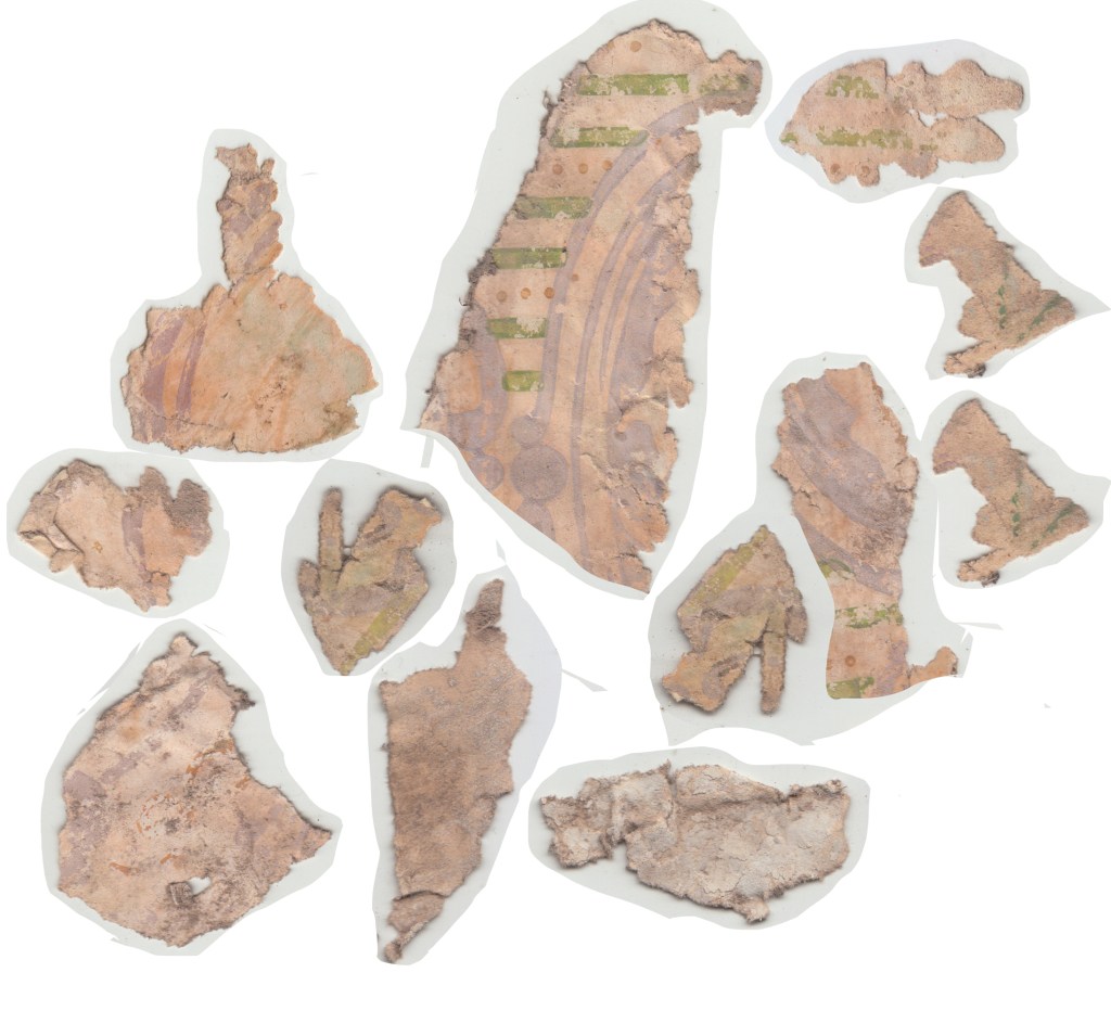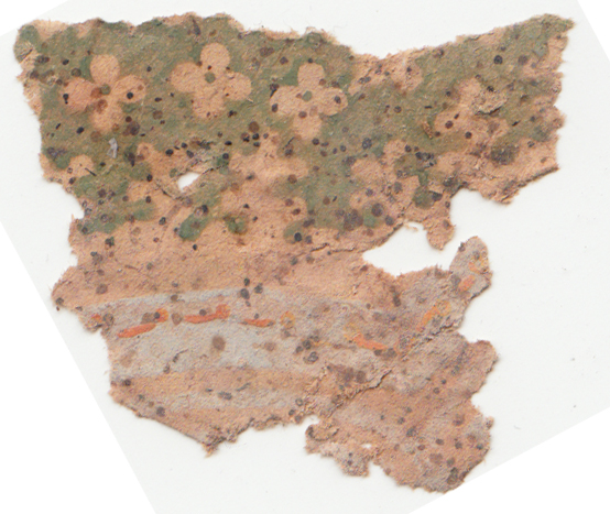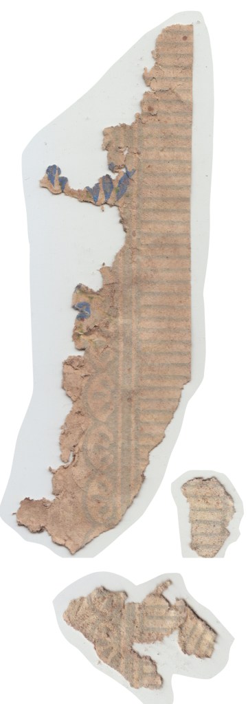 Directly underneath this is a brown-yellow design with pinstripes and botanicals obviously older.