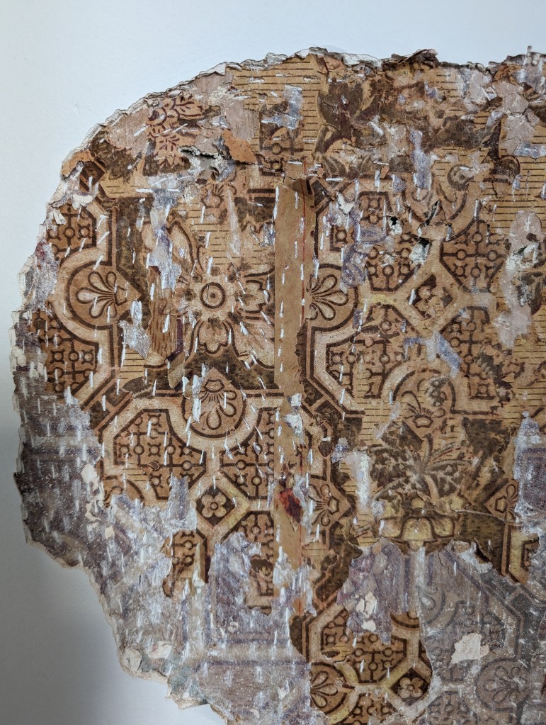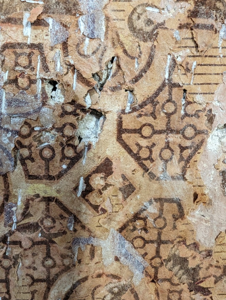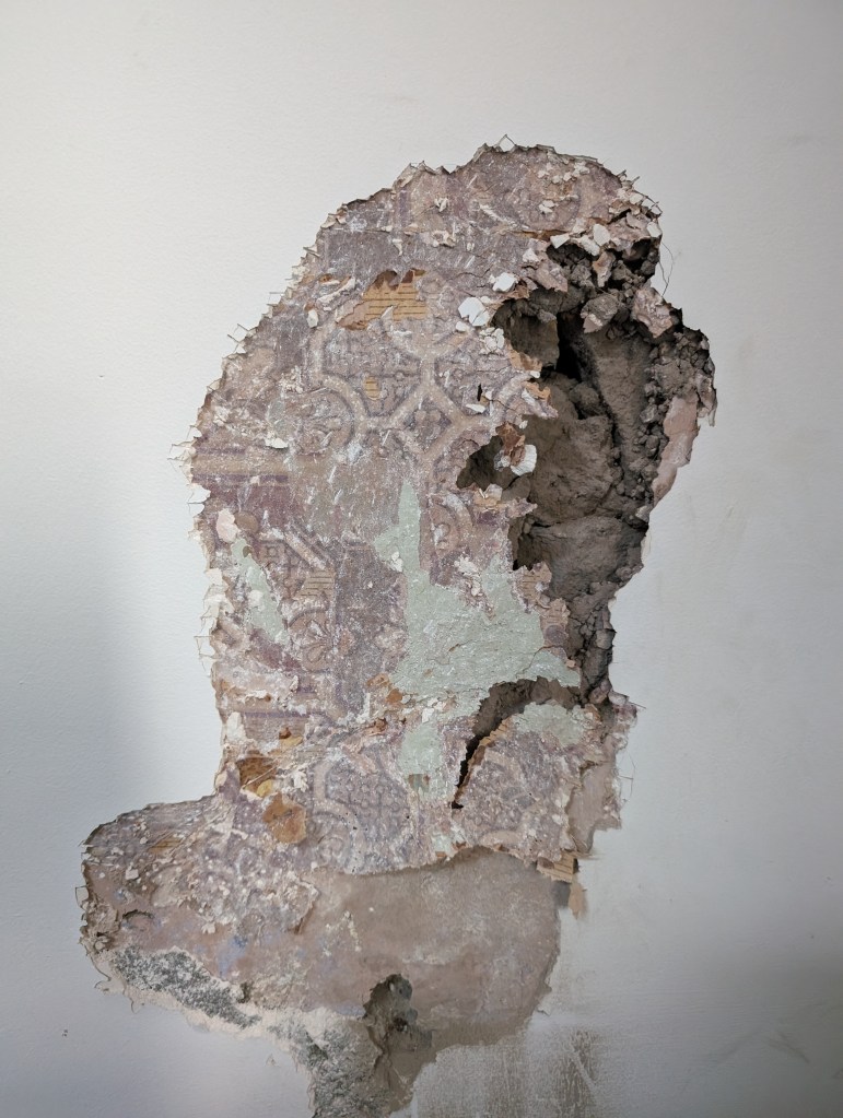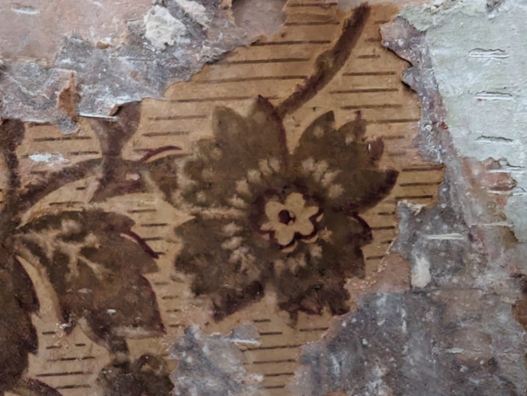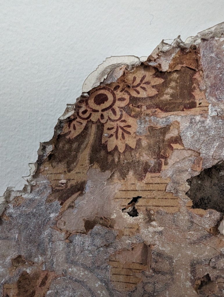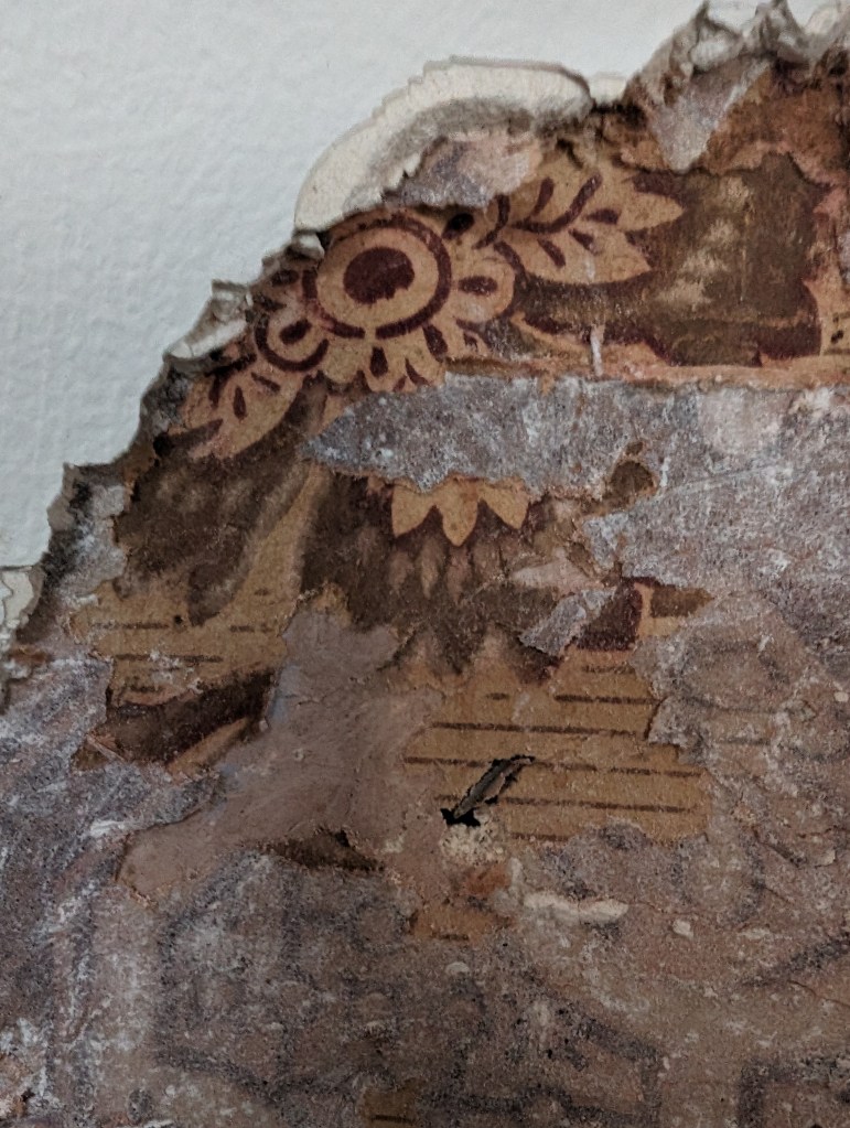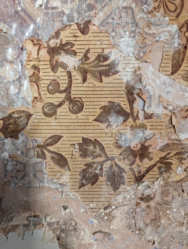 not great photos but no lighting in this part of the house. Have removed the wallpaper from the plaster in some parts along with the plaster to be scanned separately.