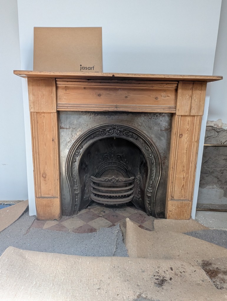also I could have a baltic pine framing of hearth somehow recycling floorboards???? so then it matches mantle same concept here below