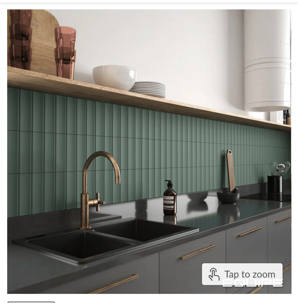 Acqua Mare “mineral” (recon stone) – same for kitchen