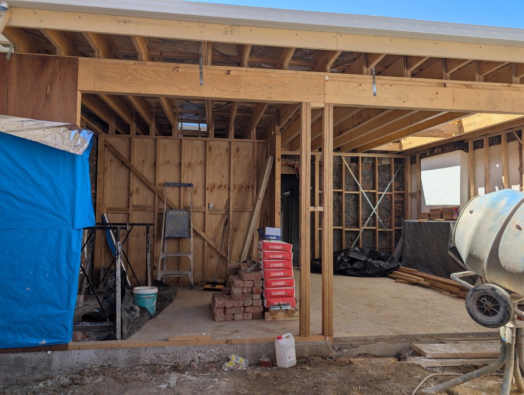 Nov 25 brickwork, skylights, sliding door and windows – in bits and pieces.plumbing roughing in.next:: p7 > back ::p0>> p1 > p2 > p3 >p4 >p5 >