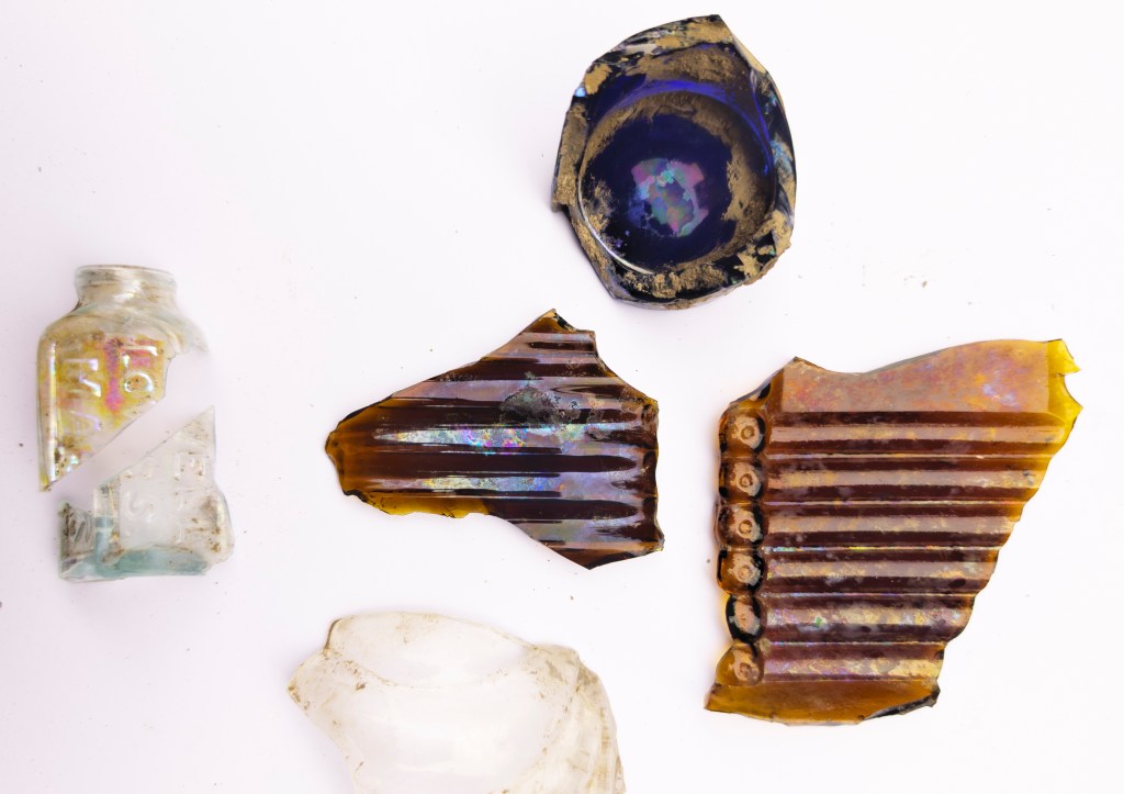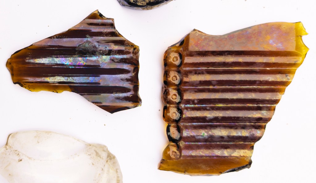 I just want to say a bit on the funny iridescence on these bits of glass,