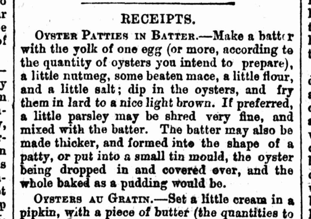 Here’s an OYSTER PATTIE recipe from 18678.