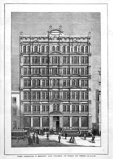 Street architecture of Melbourne: Craig, Williamson and Thomas’s new premises. Author/Creator: Cooke, AC (Albert Charles), 1836-1902. Date: December 26, 1889. ID: IE616308.