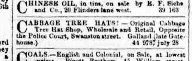 source: Advertising (1858, May 22). The Age (Melbourne, Vic. : 1854 – 1954), p. 2. (last column) http://nla.gov.au/nla.news-article154857757