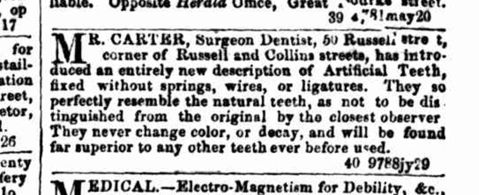 MR CARTER., Surgeon Dentist, 50 Russell steet, corner of Russell and Collins streets